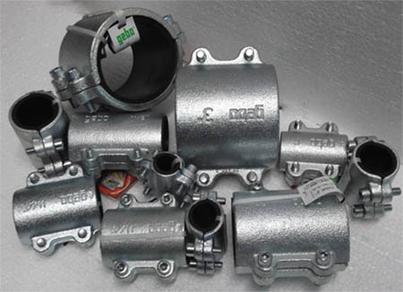 Хомути ДСК Виготовляються з ковкого чавуну і призначені для ремонту сталевих і поліетиленових трубопроводів. Вони використовуються для закладення отворів, тріщин, плям корозії та протікань, викликаних морозом. Основним ущільнювальним елементом є гума EPDM, дозволена для використання в питній воді PN 16 бар. Відома компанія Gebo чудово працює у всіх типах модифікацій або несправностей систем водопостачання та опалення зі сталевих або так званих чорних труб. Вони призначені для води або стисненого повітря, не підходять для газу.