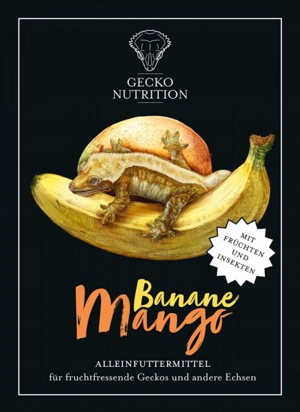 Бананово-манговий смак створює рецепт, який стає справді екзотичним! Він повний і складається переважно з комах, що гарантує дієту з високим вмістом білка. Банан і манго надають високі смакові якості, тому гекони охоче їх їдять, таким чином забезпечуючи себе всіма важливими вітамінами. Вони містять додавання необхідних мікроелементів, щоб забезпечити задоволення потреб вашого гекона в усіх відношеннях. Його можна вводити в раціон геконів, раціон яких заснований на фруктах. При використанні раціону на основі готових сумішей, як додатковий стимул для фізичних навантажень, рекомендується згодовувати живих комах.
