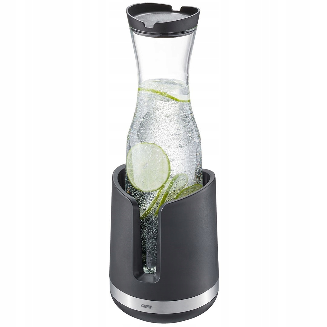 Smartline Carafe виготовлений з борозилового скла, стійкого до тепла та холоду, і кожна копія є унікальною, надувною вручну. Carafe Smartline оснащений ароматичним пробком, він вписується в кожну двері холодильника та прикрашає кожен стіл. Стильний кулер для караф та смартлайн -пляшок у матовому чорному дизайні оснащений знімним холодильним акумулятором.