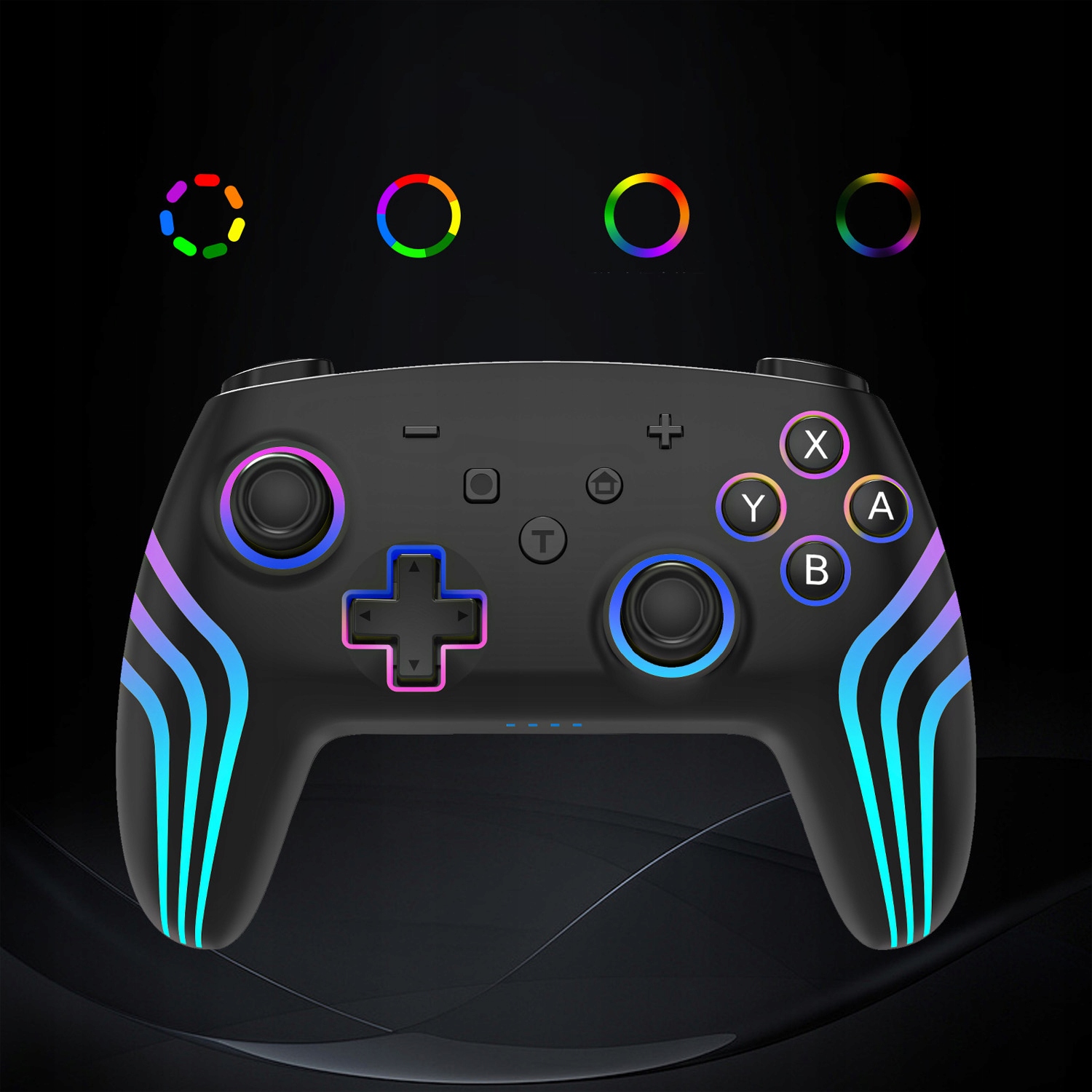✅З 7 кольорами підсвічування (червоний, помаранчевий, жовтий, зелений, блакитний, синій, фіолетовий) і 4 режимами (сліпучий, монохромний, імпульсний, циклічний імпульс) контролер дозволяє налаштувати атмосферу гри відповідно до ваших уподобань.