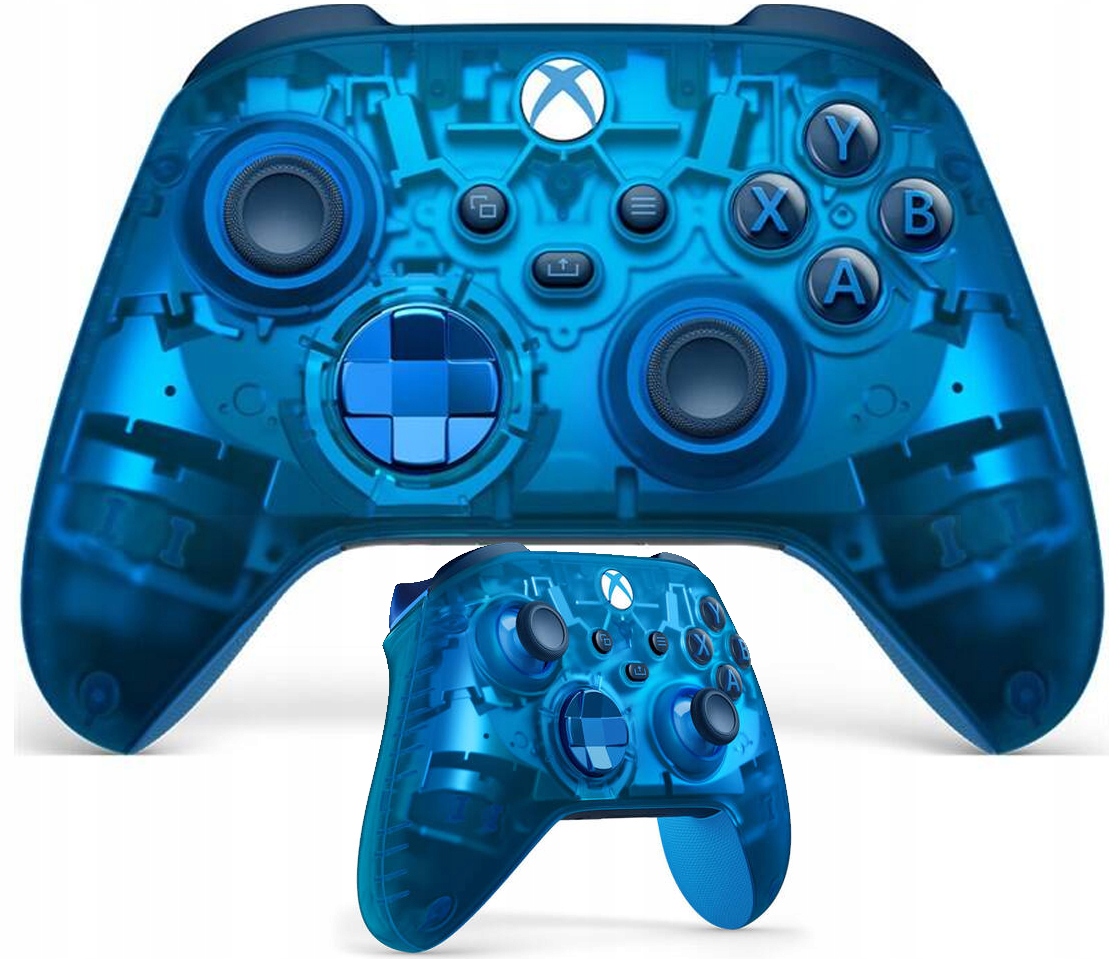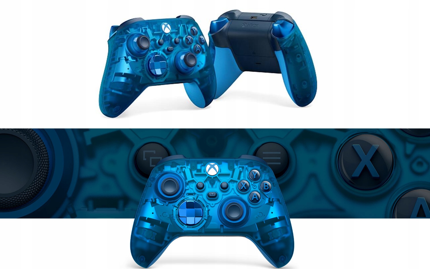 Відкрийте секрети Xbox Wireless Controller - Sky Cipher Special Edition із прозорим синім дизайном, сріблястим інтер’єром, металевими деталями тощо.