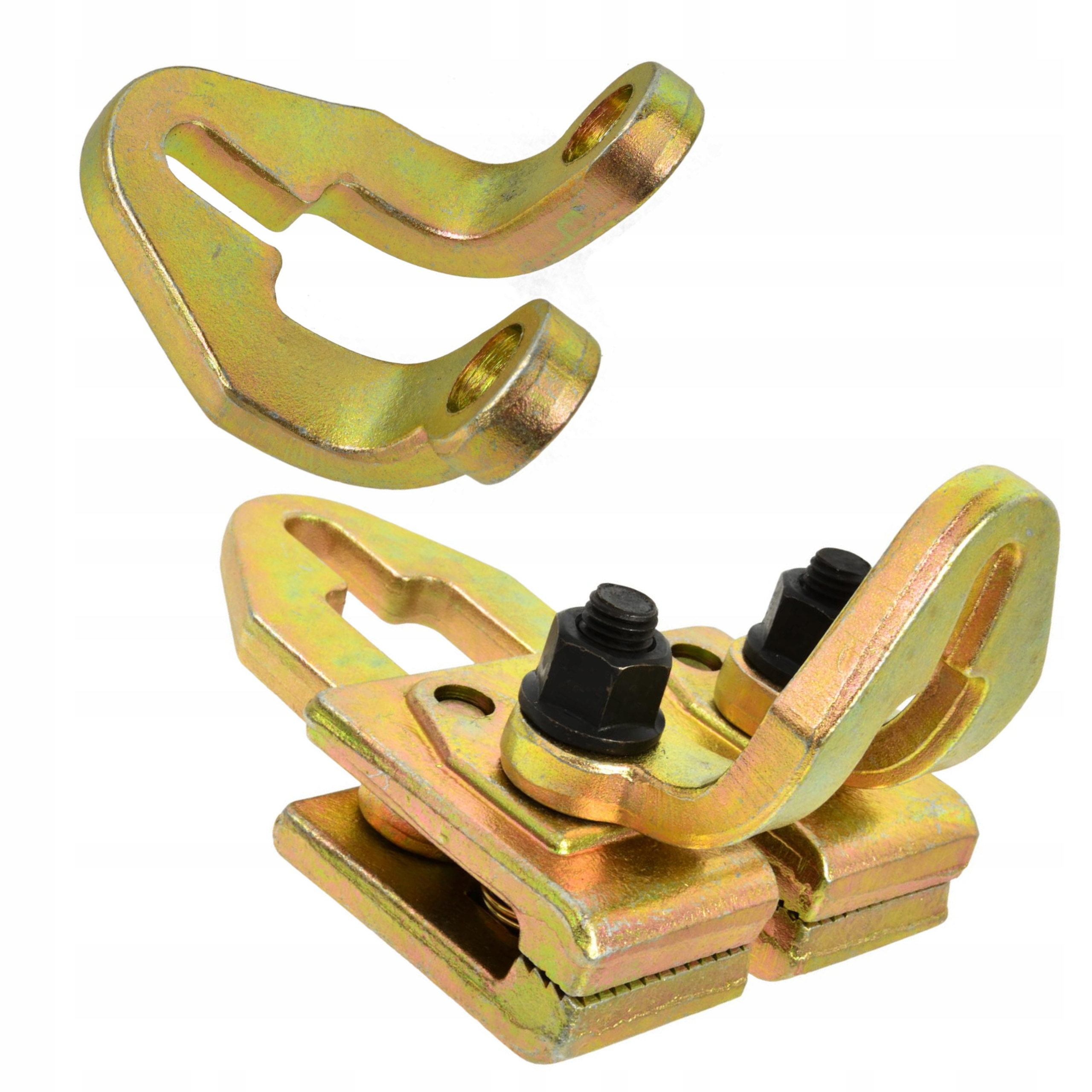 Двосторонній зажим для листового металу. Дозволяє одночасно розтягувати тіло в двох напрямках. Зубчасті губки підвищують надійність захоплення листового металу.
