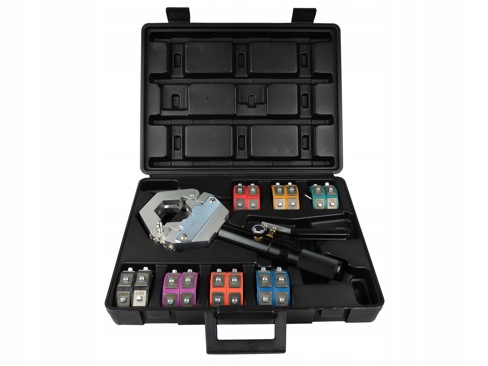 Обтиск кінців шлангів кондиціонера - це дуже корисний, простий пристрій для майстерень, які ремонтують автомобільні кондиціонери. Обтискач дозволяє швидко, легко і точно опресовувати клеми. У комплект входять хомути (плашки) для шлангів різного діаметру. Все поставляється в міцній та естетичній валізі, тому її можна використовувати як у майстерні, так і в польових умовах.