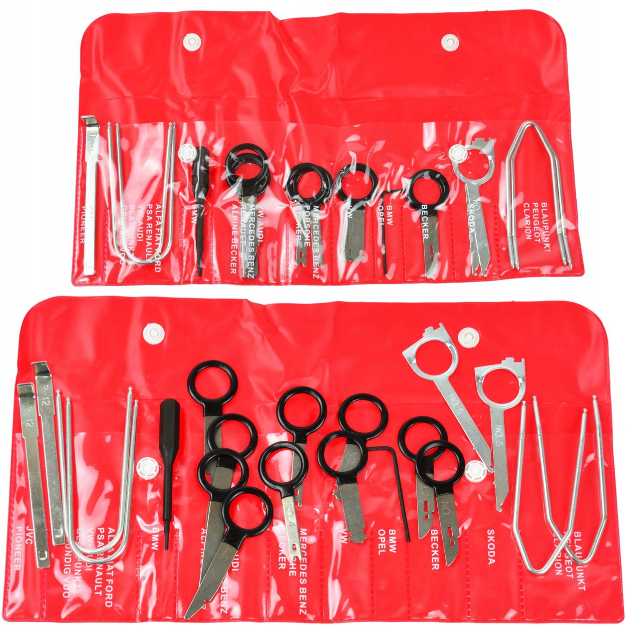 Універсальний набір для розбирання радіо та навігації з 20 предметів. Набір дозволяє демонтувати практично будь-яку автомагнітолу. Незамінний в сервісах, пов'язаних з АВТО-аудіосистемами.