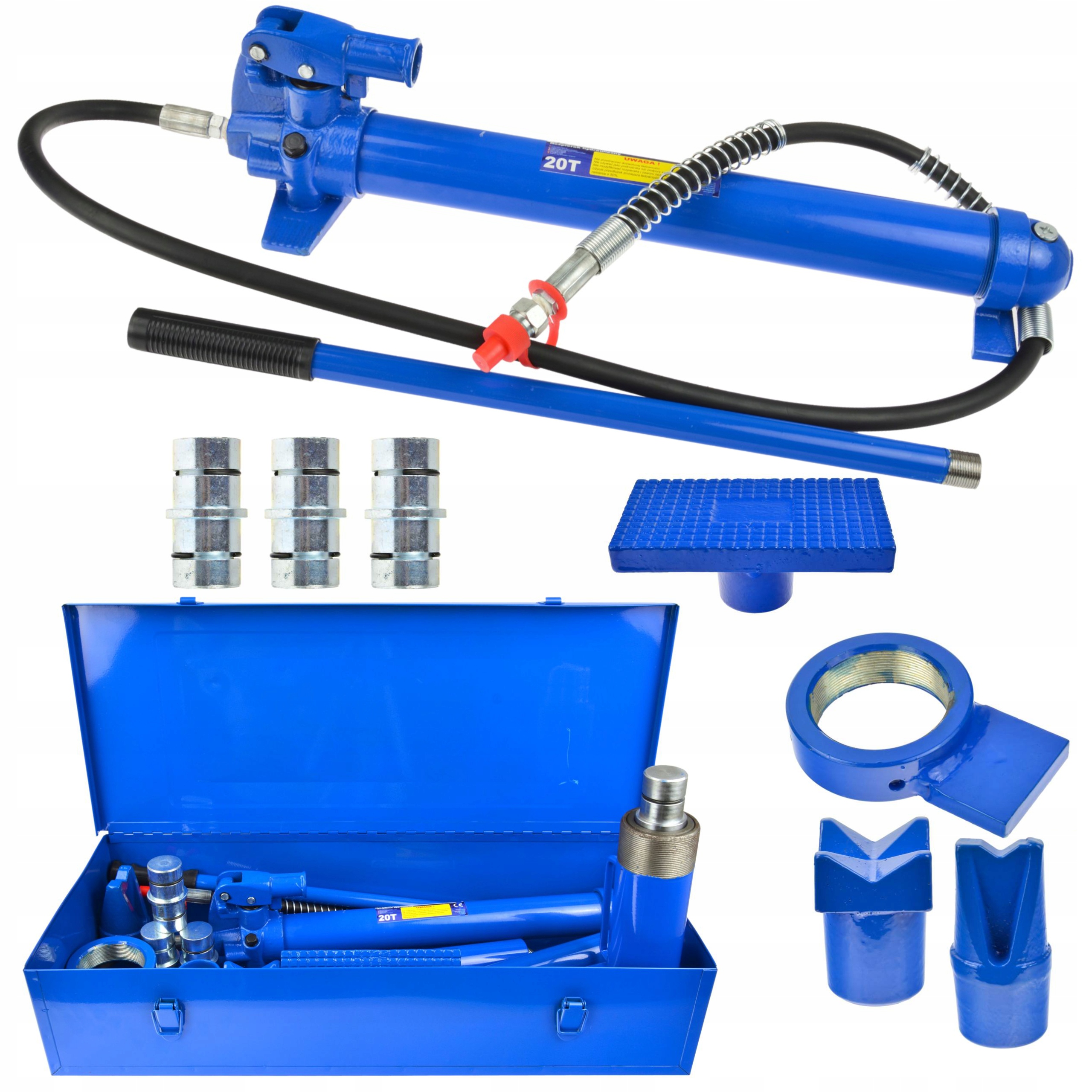 Набір професійних 20-тонних розкидачів у валізі. Набір оснащений ефективним гідравлічним насосом, який дозволяє виконувати наступні завдання: підйом, витягування, згинання, випрямлення та розкладання.