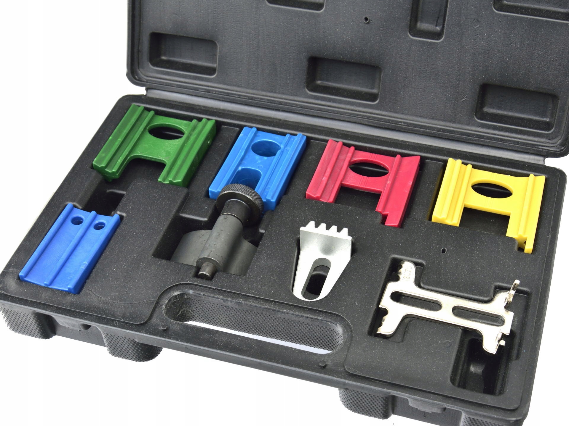 набір складається з 8 замків, дозволяє фіксувати зубчасті шестерні ГРМ в робочому положенні при заміні ременя ГРМ; спеціальна форма замків дозволяє точно встановити контрольні точки запалювання; замки фіксують механізм(и) ГРМ і колінчастий вал