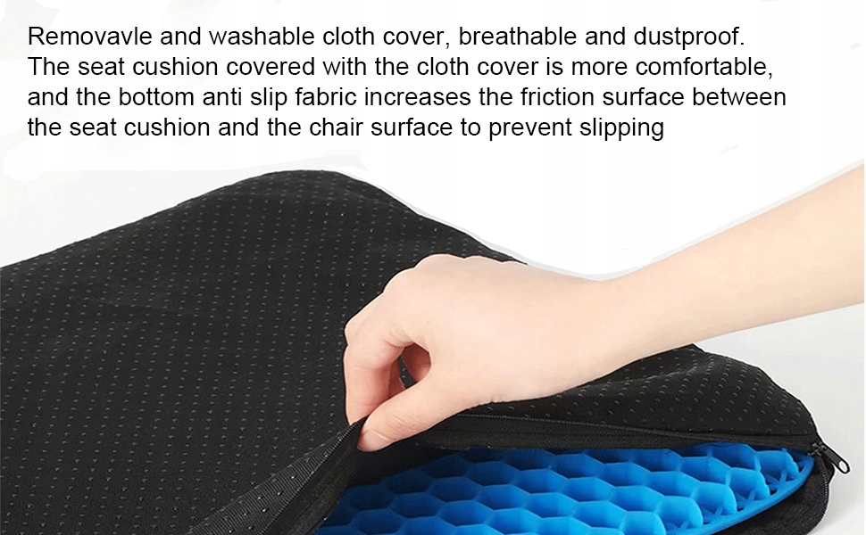 【Матеріальна блискавка, легка для очищення】 структура на блискавці, знімна кришка сидіння, дозволяє краще очистити подушку з гелевим сидінням. Таким чином ви можете використовувати подушку, не боячись плям на сидінні.