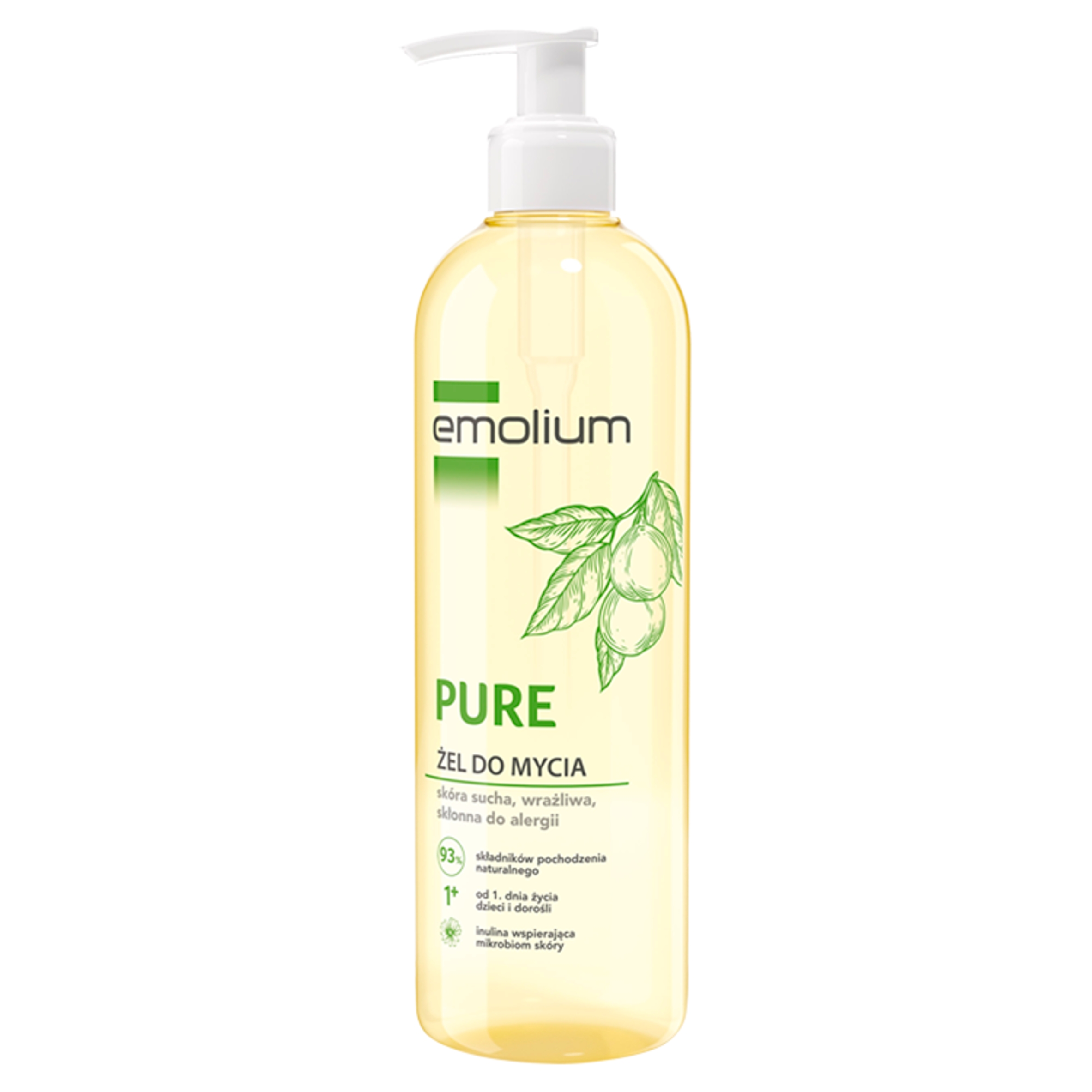 гель чистого промивання емолію - продукт для щоденного догляду за чутливою, сухою та алергією для дорослих та дітей з 1 дня життя. Гель для миття емолію є природним косметичним у 93%, що інтенсивно зволожує шкіру, піклуючись про її комфорт протягом усього дня. і рослинні олії. Чиста природна косметика є без запаху та дерматологічно перевіреними. Гель чистого миття містить 93% натуральних інгредієнтів відповідно до ISO 16128. Гелева формула є веганською та біологічною розкладанням, а упаковка продукту виготовляється в 50% переробці.