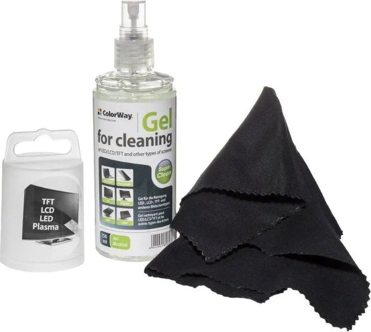 Унікальна формула очищувального гелю ColorWay гарантує відсутність смуг, забезпечуючи антистатичне та антибактеріальне очищення. Густий гель не розтікається по екрану, запобігаючи потраплянню рідини в простір між корпусом пристрою та екраном. Він ефективний навіть на повністю вертикальних поверхнях. Гель можна сміливо використовувати для чищення будь-якого пристрою, незалежно від того, чи це плазмовий телевізор, чи планшет.