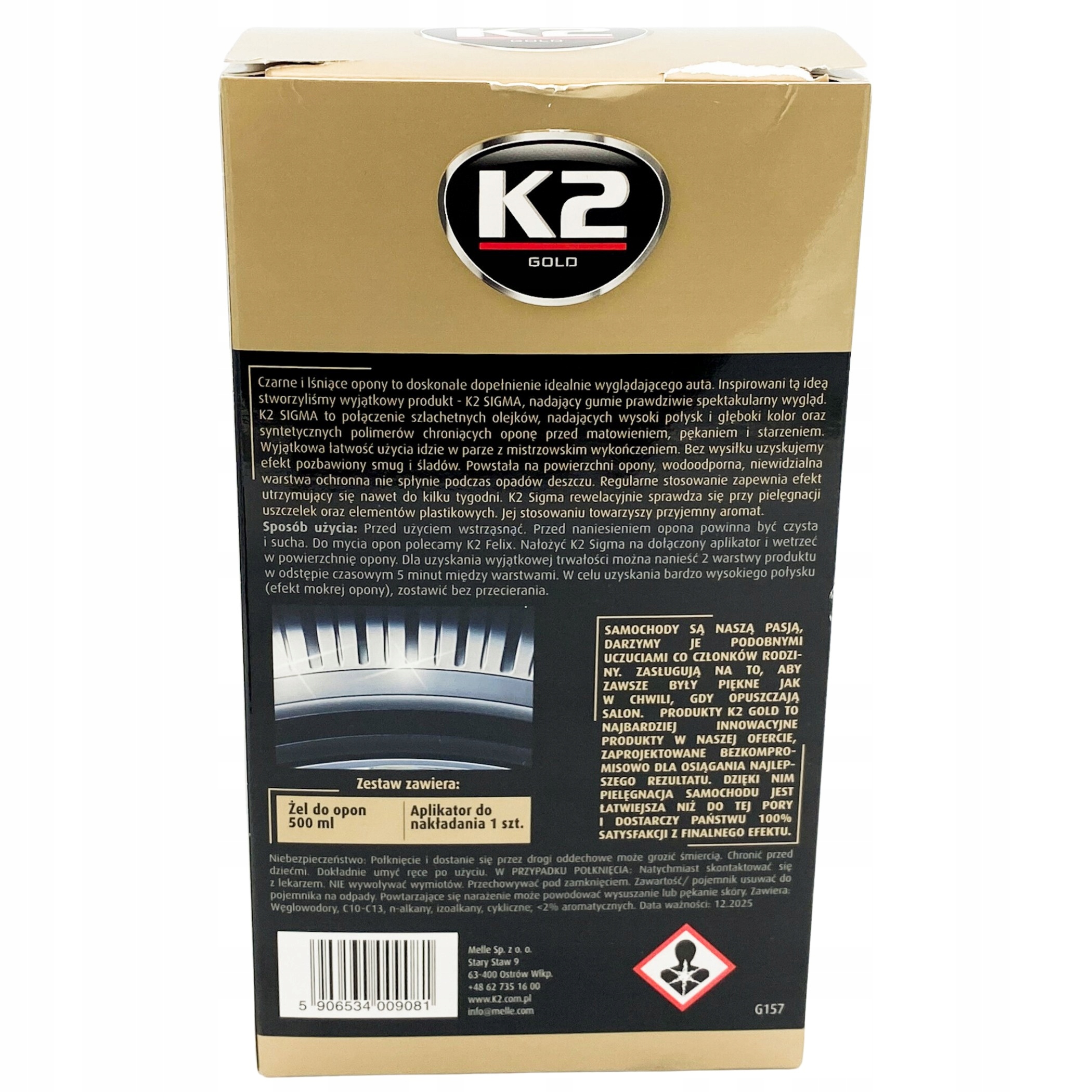 K2 Sigma ідеально підходить не тільки для догляду за шинами, а й для ущільнювачів і пластикових елементів. Ви можете успішно використовувати його для багатьох різних автомобільних деталей, піклуючись про їх зовнішній вигляд і довговічність.