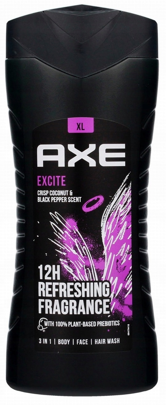 - Формула гелю для душу AXE Excite створена спеціально для чоловічої шкіри.