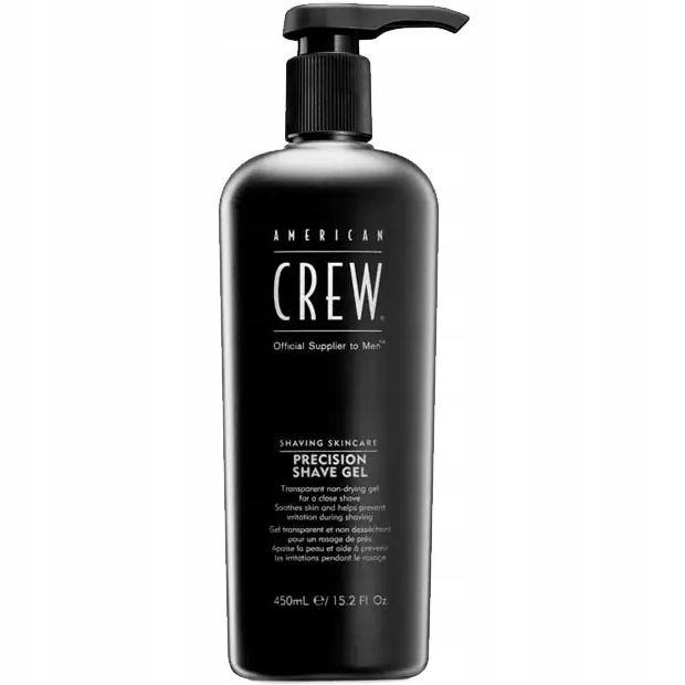 American Crew Precision Shave gel призначений для нормальної та тонкої бороди. Косметичний засіб має консистенцію безбарвного гелю, що полегшує ковзання по шкірі, забезпечуючи чисте та ретельне гоління. Косметичний засіб містить екстракт гарбузового насіння і масло чайного дерева. Ці елементи мають заспокійливу дію і захищають від запалень. Крім того, гель відмінно зволожує шкіру і регулює рівень виділення шкірного сала.