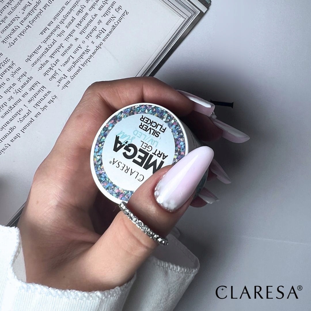 Гель для малювання нігтів Claresa Mega Star Art Gel Silver Flicker з частинками
