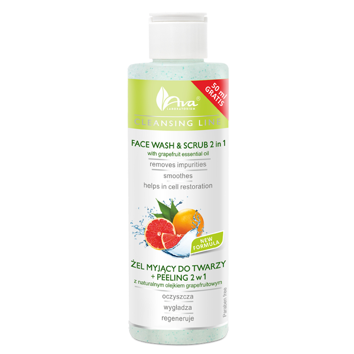 Гель для очищення обличчя 2в1 + пілінг з натуральною олією грейпфрута призначений для всіх типів шкіри. Засіб чудово очищає шкіру та ефективно видаляє ороговілий епідерміс, не порушуючи його природну ліпідну оболонку. Містить мікрогранули з олією жожоба та екстрактом волошки з заспокійливою дією. Натуральна олія грейпфрута освіжає та залишає на шкірі ніжний природний фруктовий аромат. Цей надзвичайно ефективний гель розгладжує епідерміс і робить шкіру м’якою на дотик.