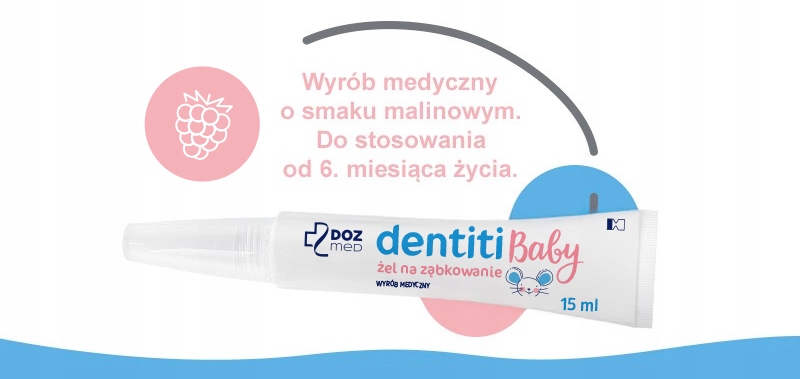 DOZ MED Dentiti Baby гель для прорізування зубів 15 мл - делікатний заспокійливий препарат, призначений для немовлят під час прорізування зубів. Це допомагає зменшити дискомфорт, заспокоїти подразнені ясна та принести швидке полегшення. Формула була розроблена з урахуванням чутливих ясен маленьких дітей.