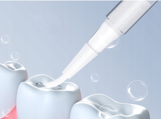 Для досягнення кращого та швидшого ефекту відбілювання зубів апарат оснащено технологічно сучасним відбілювальним гелем DentalForce. При денному освітленні відбувається окислювально-відновна реакція активних відбілюючих інгредієнтів. швидко міститься в препараті, що допомагає видалити різні види зміни кольору на зубах і між ними.