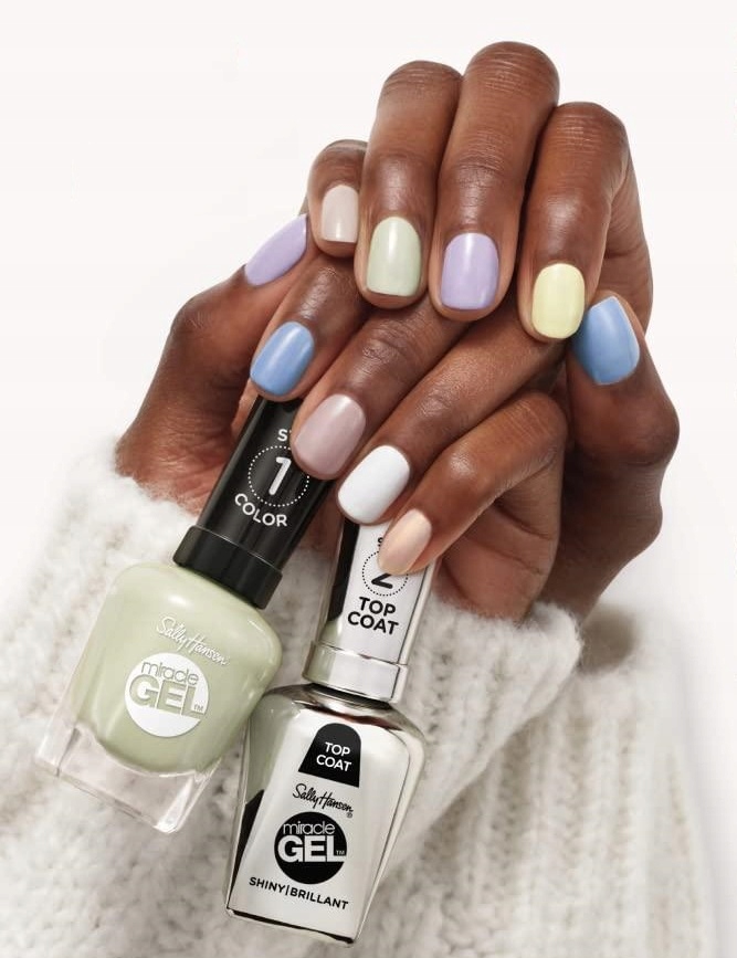 Оригінальний продукт Компанія: Sally Hansen. лінійка гель-лаків Miracle Gel: перший, гібридний манікюр, як у професійному салоні краси, не виходячи з дому та без лампи! Поєднання прозорості кольору та технологічно передового гелю. Нова запатентована лінійка Miracle Gel включає продукти, які є наполовину лаком і наполовину гібридною манікюрною системою, що гарантує ефект до 14 днів, без необхідності використання LED/УФ-лампи. Досить двох простих кроків: нанести два шари кольорового лаку Miracle Gel Color Coat, а потім покрити нафарбовані нігті Top Coat Miracle Gel Top Coat, щоб зручно досягти довготривалих результатів і унікального, блискучого та глибокого кольору. Ємність: 14,7 мл.