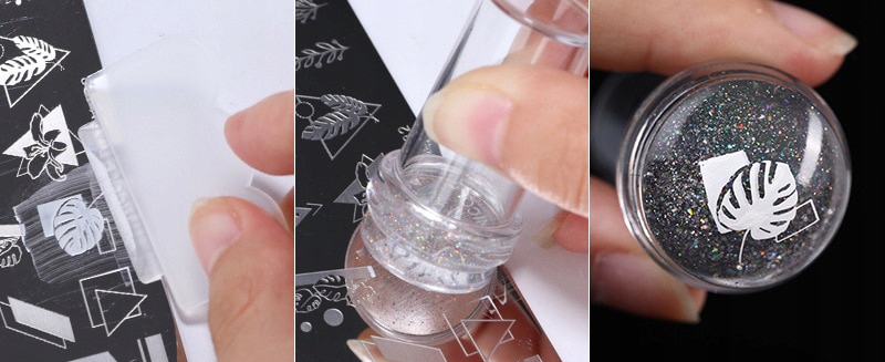- Перенесіть візерунок зі штампа на ніготь, намагаючись лише натиснути подушку, не зрушуючи її