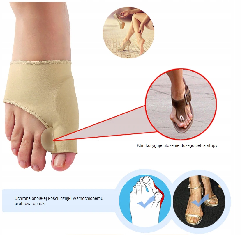 Якщо ви помітили деформацію стопи, великий палець почне неприродно вигинатися до сусідніх пальців, не зволікайте з реакцією на цю проблему. З часом ви почнете відчувати біль у місці утворення шишки, а взуття почне боліти. Все це може призвести до хірургічної операції та іммобілізації на кілька тижнів. Ця пов'язка дозволить вам швидко і ефективно відреагувати на зростання шишки. Він утримуватиме великий палець у правильному положенні, відновлюючи природний вигляд стопи.