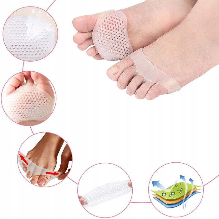 - Зручні та гнучкі: виготовлені з м’якого силікону, вони легко адаптуються до форми стопи, забезпечуючи комфорт протягом усього дня.