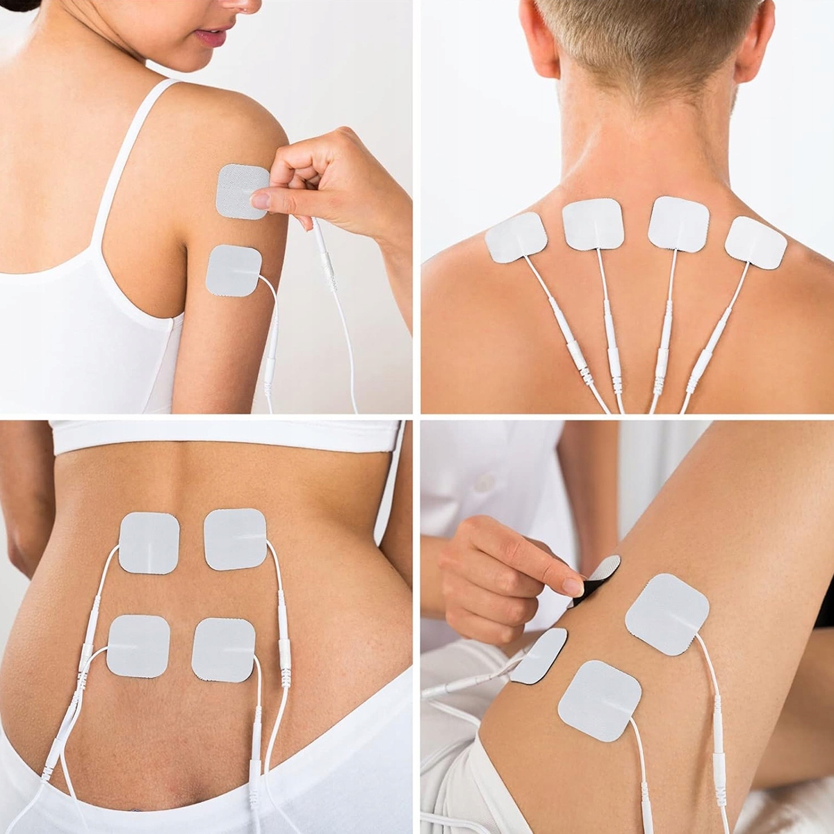 Наші електроди сумісні з будь-яким електростимулятором TENS і м’язовим тренажером EMS (не підходить для високочастотних пристроїв), які підтримують гніздо 2 мм. Покращена самоклеюча конструкція та дизайн, що не викликає подразнення, зручно прилягають до всіх частин тіла.