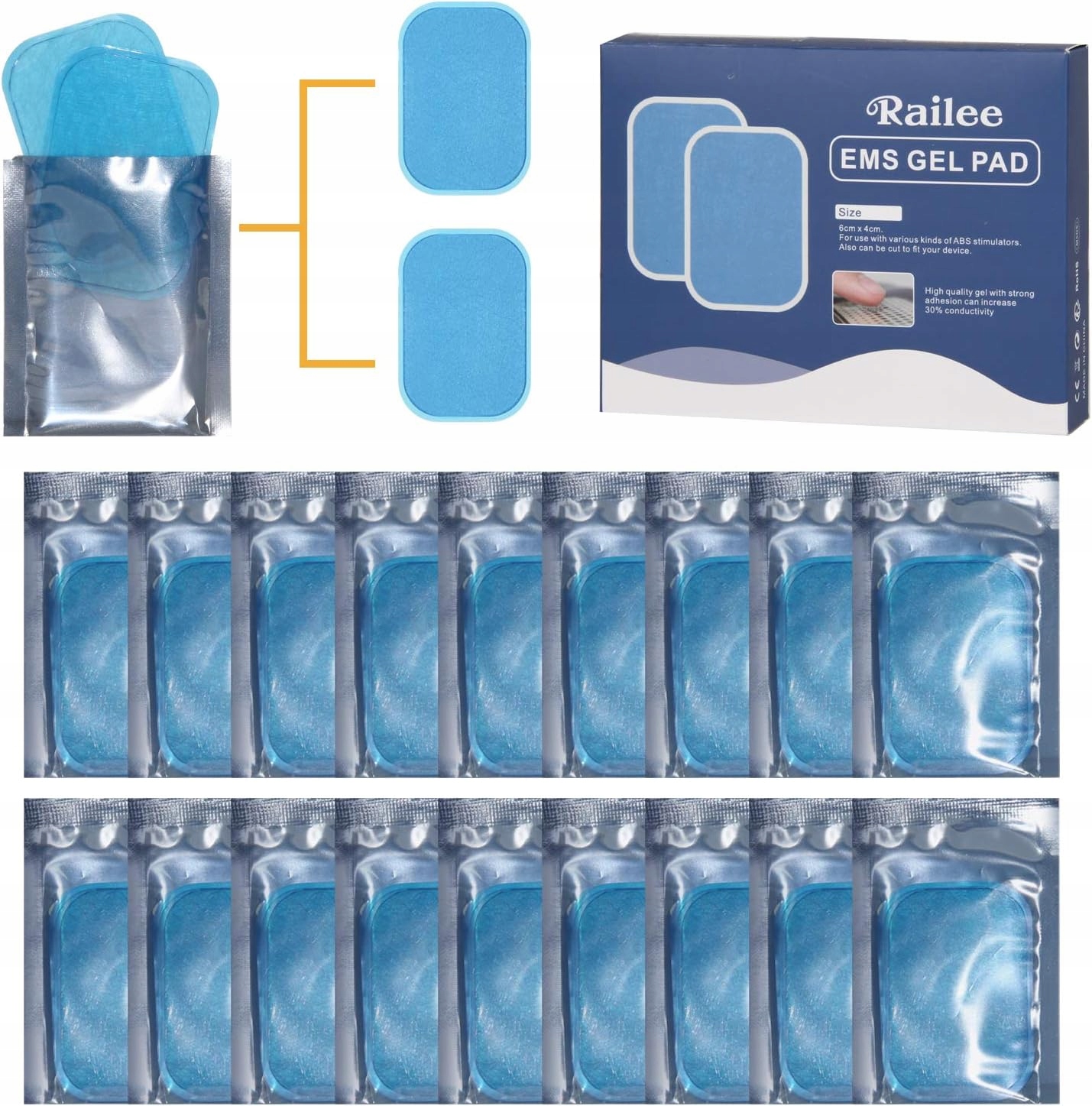 Одноразова вакуумна упаковка: набір гелевих подушечок EMS містить 36 аркушів (2 аркуші в упаковці, 18 пар). Змінні гелеві вставки EMS для електростимуляції м'язів. Гелева накладка м'яка, зручна, самоклеюча та багаторазова.Стійка в'язкість: гелева накладка для професійного миостимулятора має тривалий термін служби, може бути близько 30 разів. Частота використання змінних гелевих пластин ABs Trainer залежить від чистоти та жорсткості вашої шкіри. Ми рекомендуємо очистити шкіру спиртом перед використанням, щоб продовжити термін служби виробу Комфорт і здоров'я: гелеві прокладки виготовлені з високоякісних матеріалів, прокладки EMS не викликають роздратування тіла, дуже безпечні та зручні. Крім того, вони мають гарну в’язкість, самоклеючі властивості та багаторазові властивості.