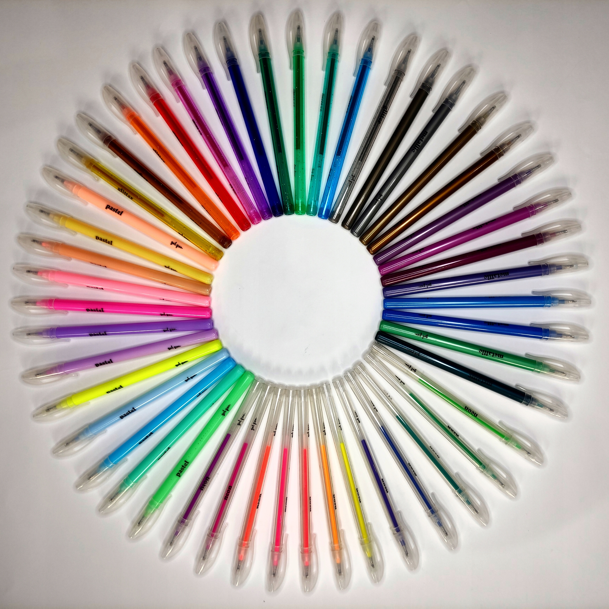 - Різні види ручок (неонові, пастельні, блискучі, металеві)