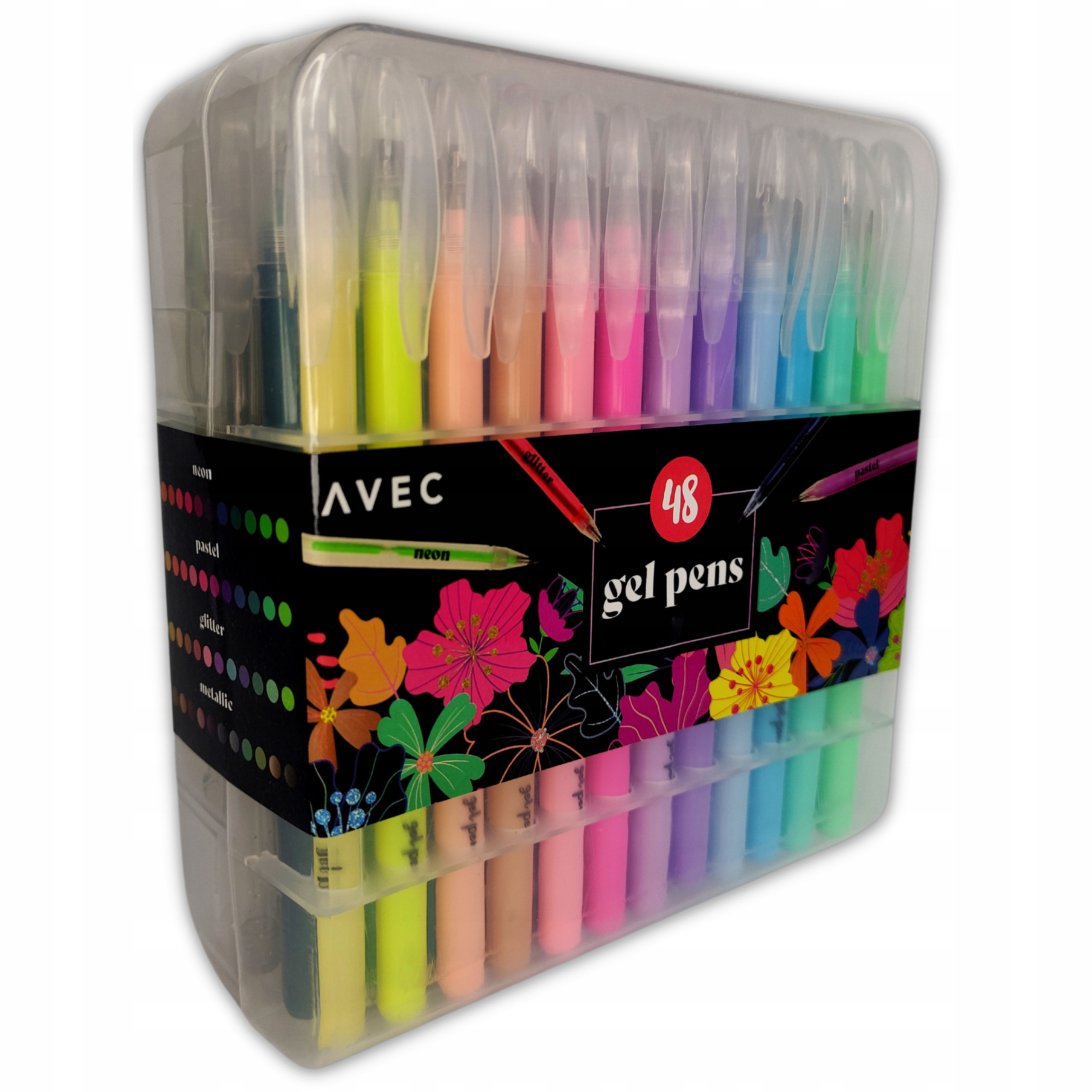 НАБІР 48 КОЛЬОРОВИХ ГЕЛЕВИХ РУЧОК З БЛИСКОМ