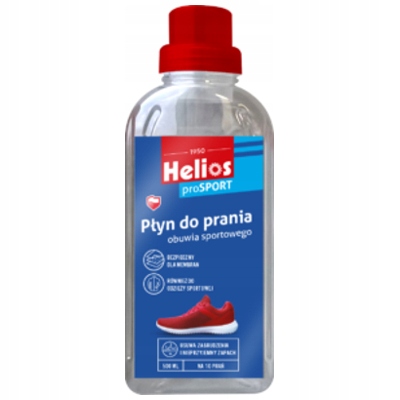 Рідина для миття спортивного взуття Helios легко видаляє бруд і неприємний запах кросівок або кросівок. Ви також можете використовувати його, щоб оновити спортивний одяг - спітнілу куртку чи спортивний костюм.
