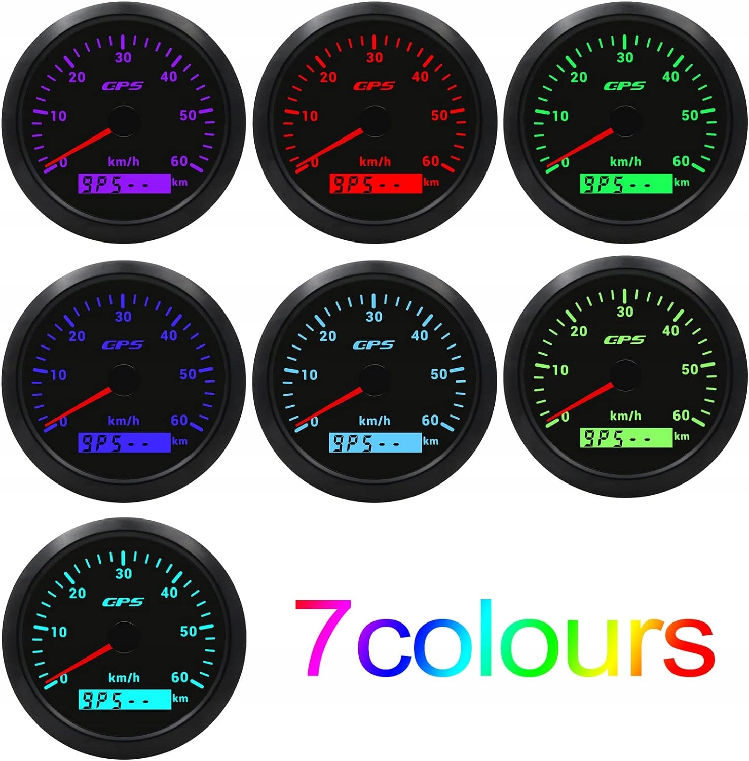Geloo 85 мм GPS спідометр із 7 кольорами підсвічування, 60 км/год, одометр, спідометр для мотоциклів, морських човнів, вантажівок із GPS-антеною