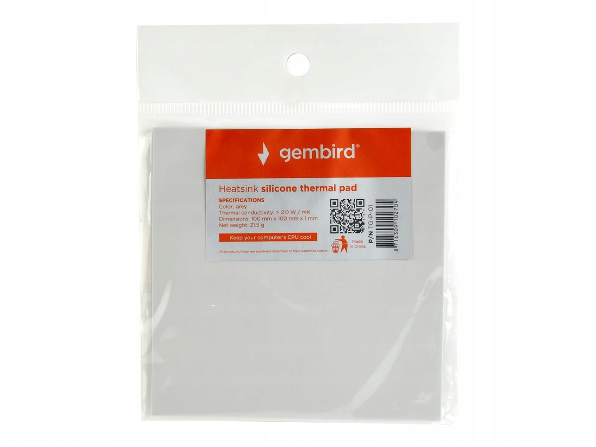 - Назва: GEMBIRD TG-P-01 Теплопровідна силіконова прокладка Gembird, 100 x 100 x 1 мм