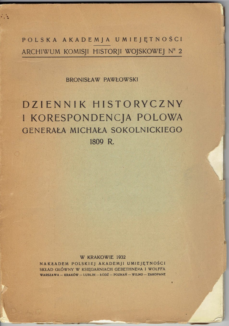 Generał SOKOLNICKI DZIENNIK HISTORYCZNY 1809 R.