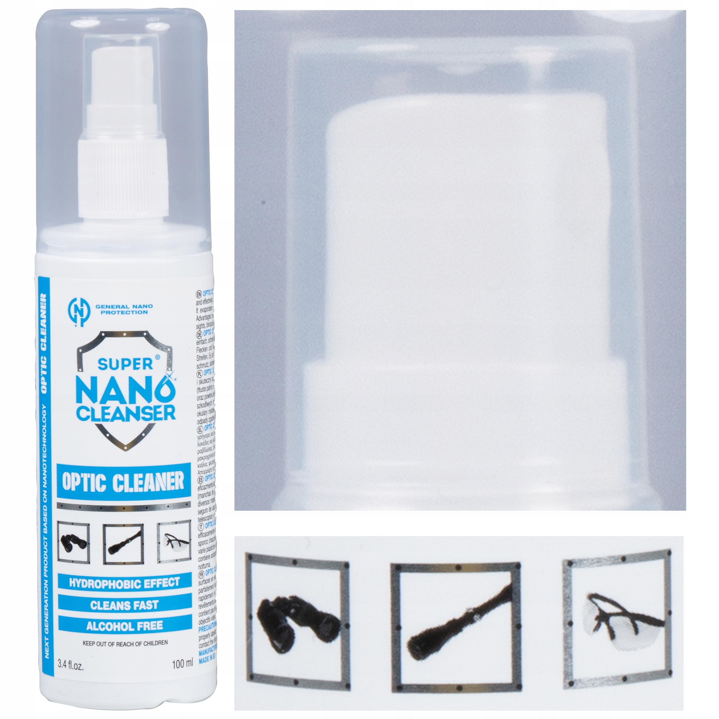 Загальний нанозахист створено для використання на широкому спектрі оптичних пристроїв. Він ідеально підходить для біноклів і прицілів, де, крім очищення, він ефективно захищає лінзи наших пристроїв від плям води. Використання безспиртової формули означає, що препарат можна використовувати і на полімерних матеріалах. Тому він ідеально підходить для чищення будь-яких типів захисних і балістичних стекол. Компактні розміри пляшки означають, що ми можемо брати її куди завгодно за допомогою оптики, а ручний насос забезпечує надійність і ефективне використання всього вмісту.