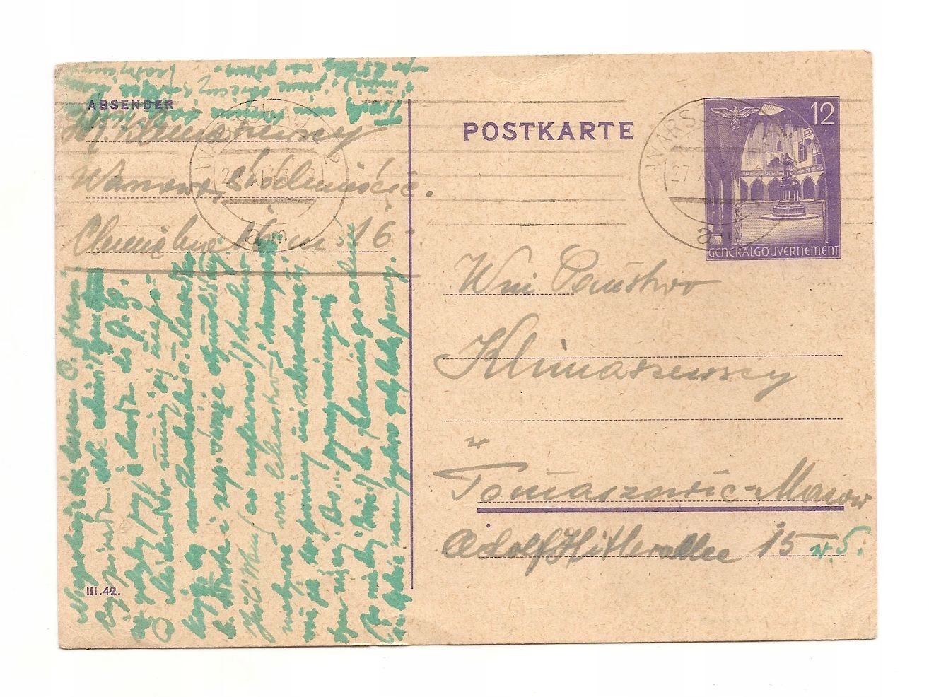 GENERALNE GUBERNATORSTWO KARTA POCZTOWA Cp9II obieg WARSZAWA