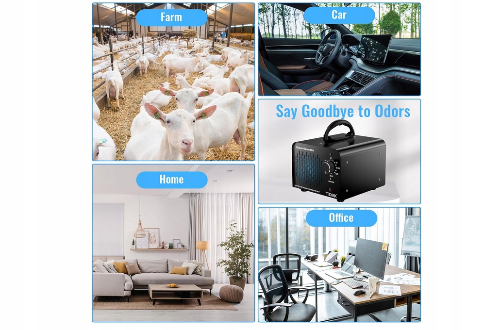 ОБСЛУГОВУВАННЯ: Генератор озону марки TTDMK пропонує зручність адаптації до різноманітних приміщень, ефективно усуваючи стійкі запахи, тим самим покращуючи загальну якість повітря та створюючи приємнішу атмосферу.
