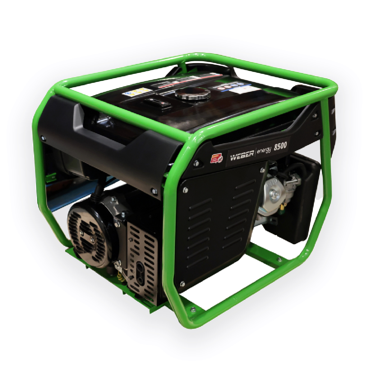 Генератор WEBER ENERGY 8500 оснащений 4-тактним 1-циліндровим двигуном JP188 потужністю 18 к.с. при 3600 об/хв, завдяки чому виробляє безперервну потужність 7 кВт і максимальну потужність 7,5 кВт. Оснащений двома розетками на 230 В і однією на 400 В і ручним пускачем.