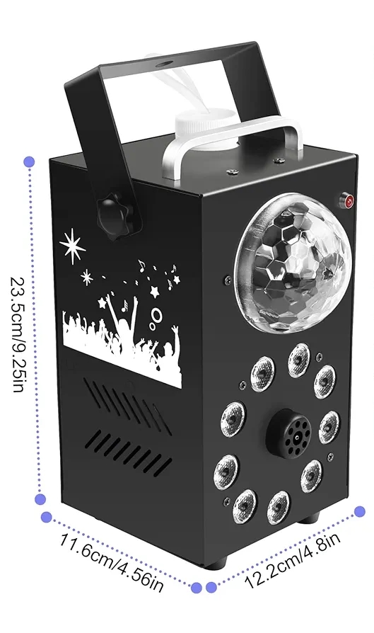 Завдяки 9 світлодіодам RGB і диско-кулі з 6 кольорами (червоний, зелений, синій, білий, бурштиновий, УФ) пристрій створює вражаючі ефекти: