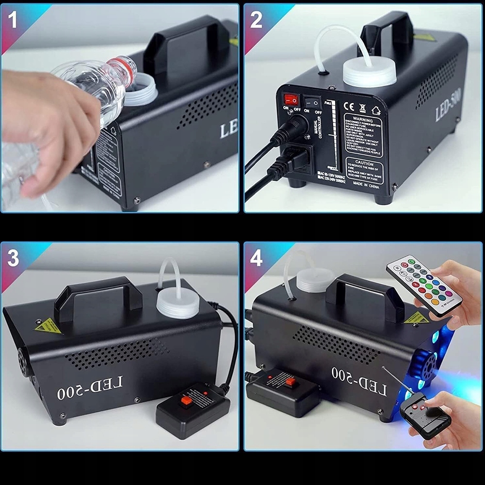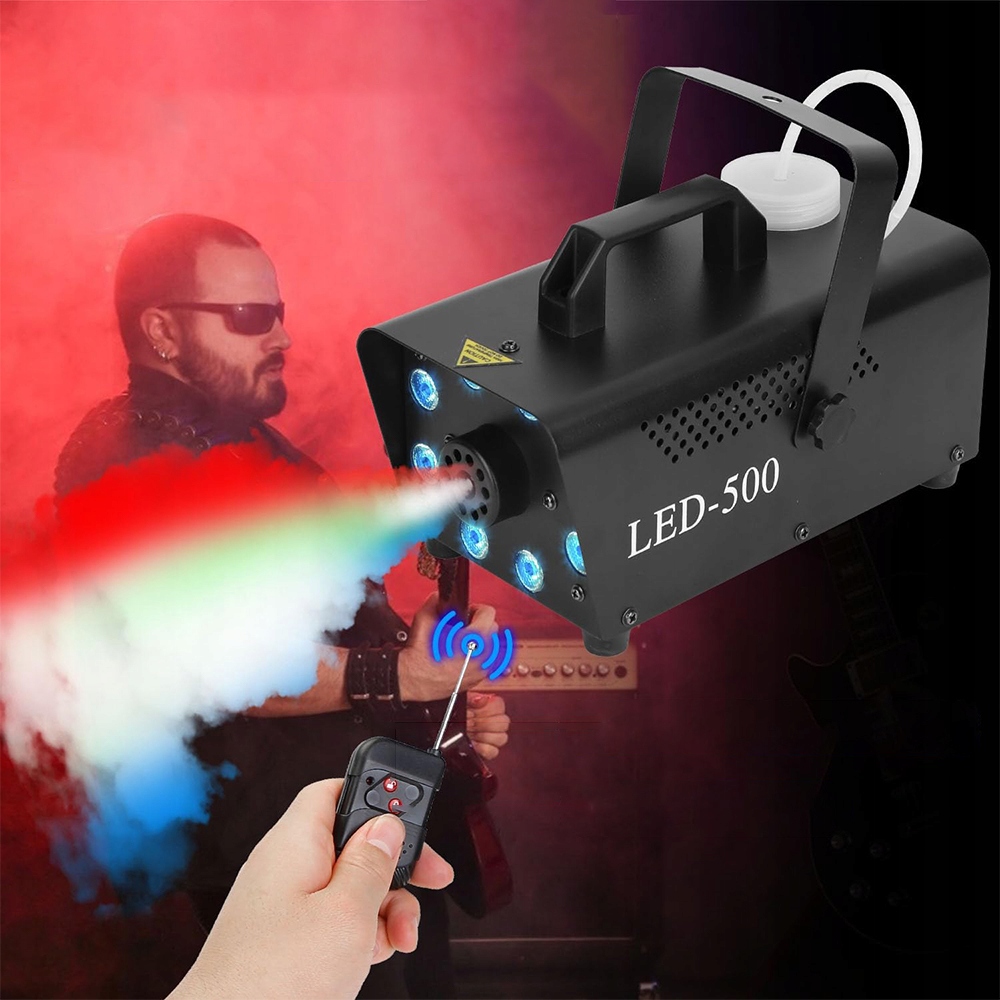 - Ідеально підходить для створення чудової атмосфери. ## Потужне утворення диму: ця машина для створення туману швидко нагрівається та розпилює дим протягом приблизно 25 секунд, забезпечуючи рівномірний дим протягом усієї події. Оснащений двигуном потужністю 500 Вт, він виробляє до 2000 кубічних футів диму за хвилину на відстані 2-3 метрів, створюючи інтенсивний візуальний ефект. Сумісний із димовими маслами на водній основі.