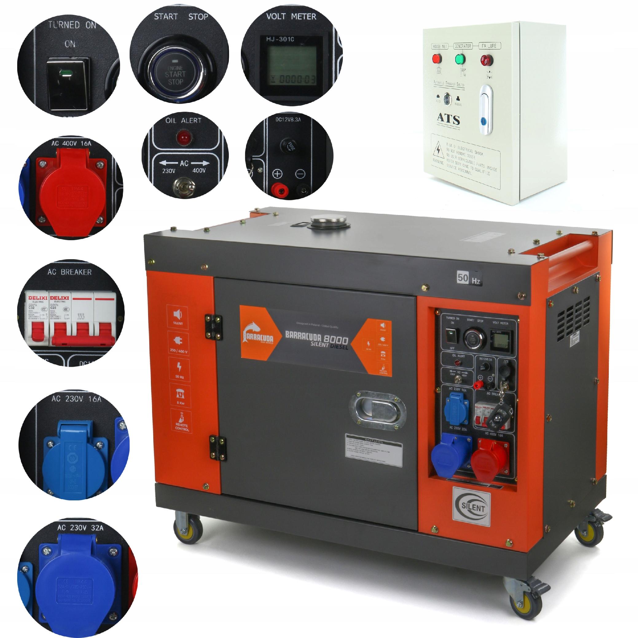 Електрогенератор - генератор потужністю 10 кВА (8 кВт) 400В BARRACUDA DIESEL 8000 SILENT з посиленою фазою 230В PLUS модулем ATS (SZR)