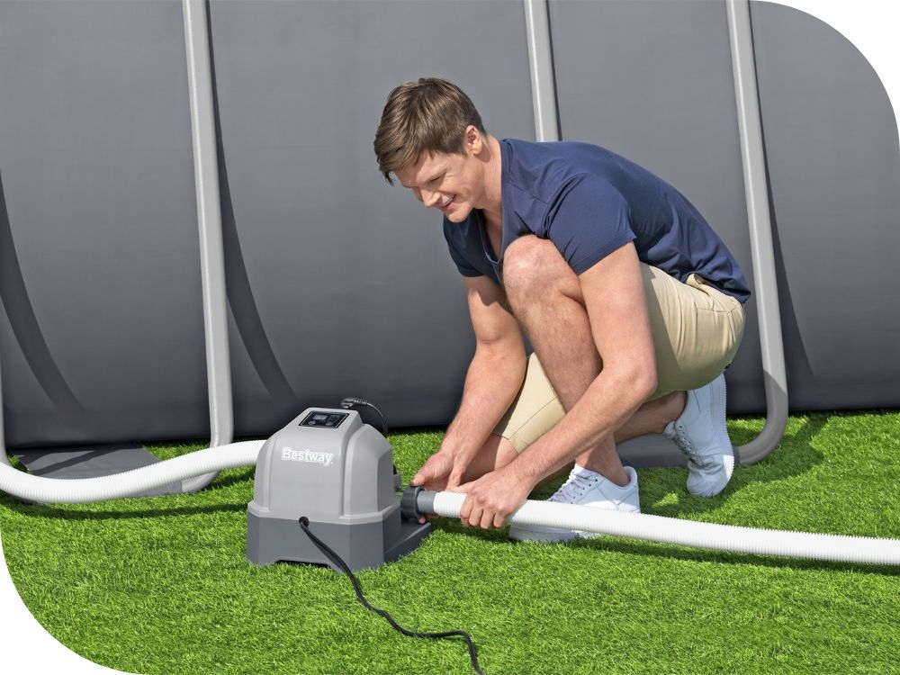 - Сумісність з басейнами до 56 775 л, вимагає мінімальної витрати 1 249 л або більше, піщаний фільтрувальний насос