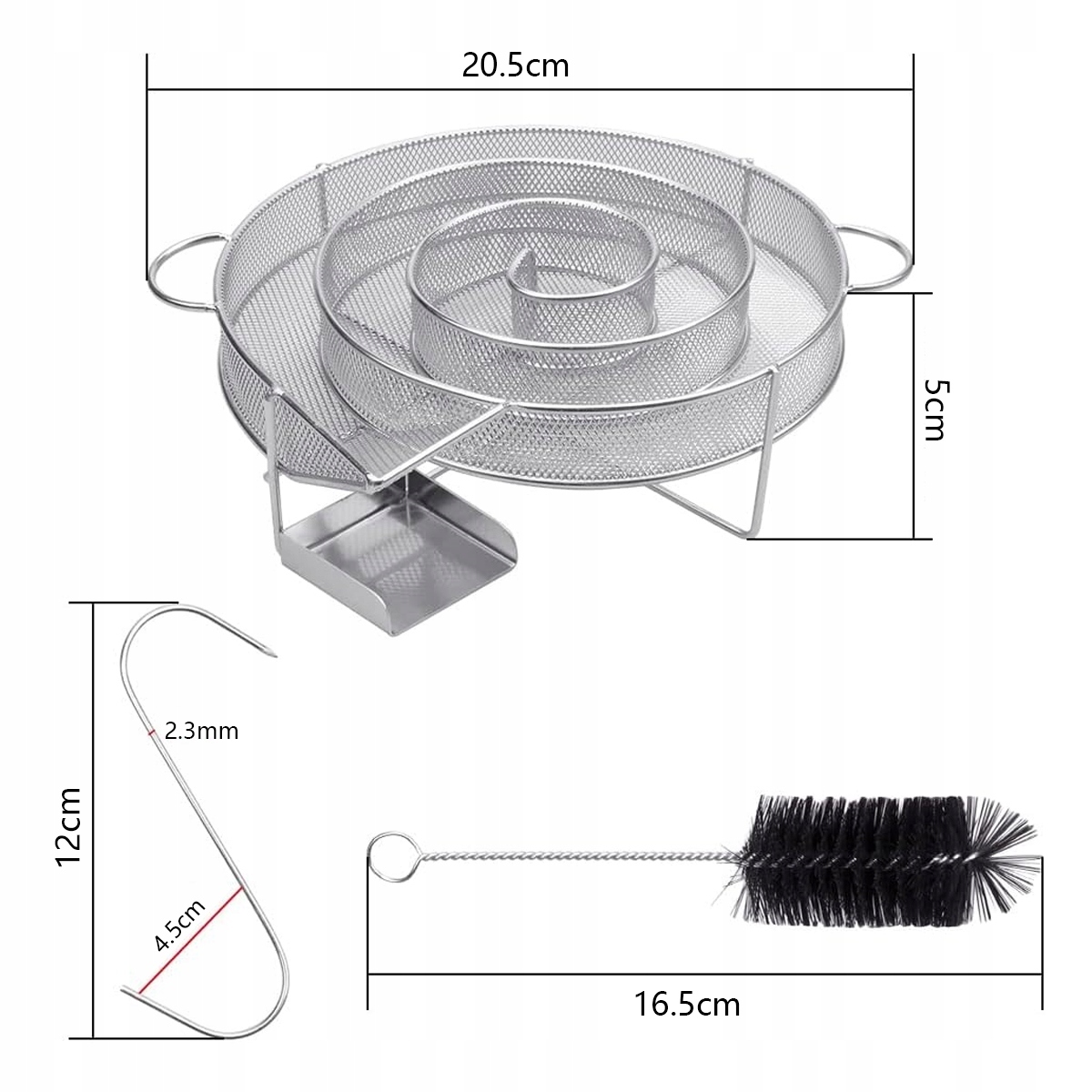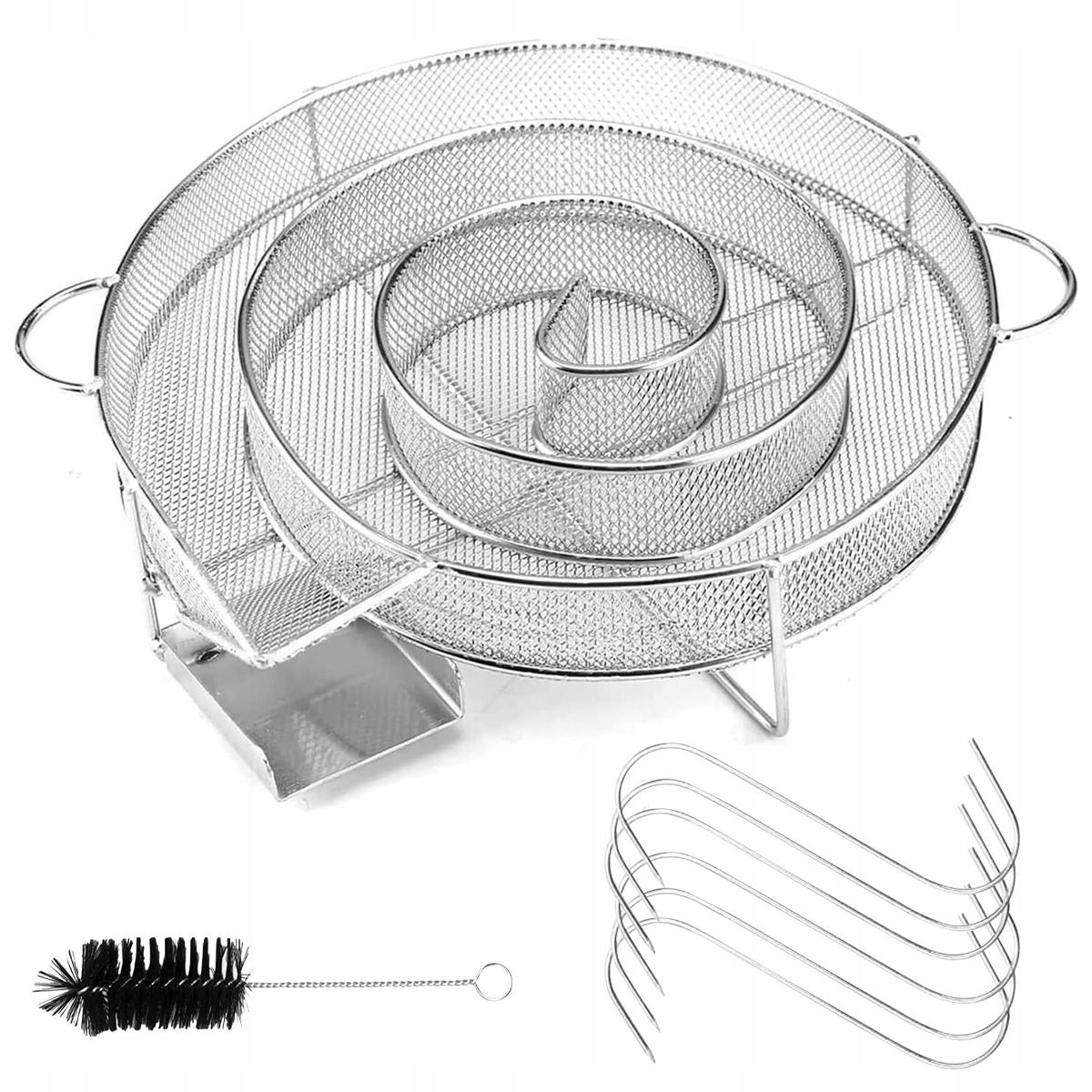 🔥Кругла коптильна спіраль із міцної високоякісної нержавіючої сталі 304 ідеально підходить для коротшого часу приготування (7-10 годин холодного копчення). Щітка для чищення, що входить у комплект, полегшує очищення спіралі для куріння з нержавіючої сталі. Просто струсіть попіл після спалювання та видаліть останні залишки щіткою для чищення. У набір також входить 6 S-подібних гачків для підвішування м'яса під час копчення.
