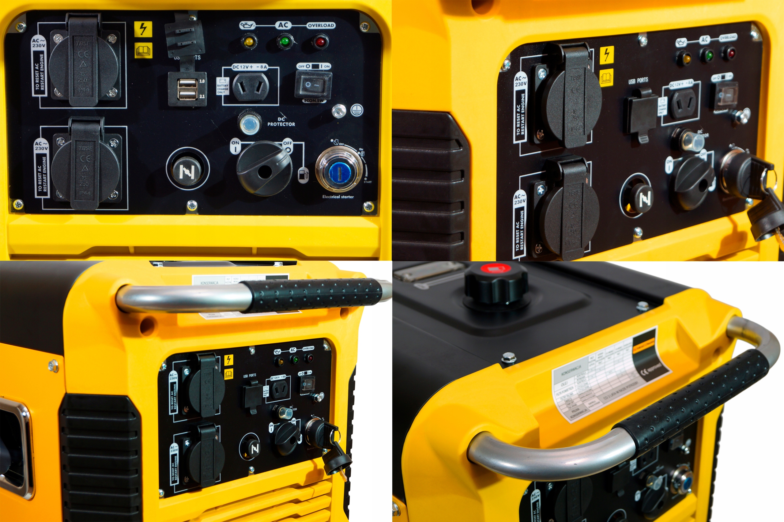 ✔️Агрегат також має датчик рівня масла. Якщо в двигуні занадто мало масла, загоряється жовта лампочка, що означає, що вам слід вимкнути агрегат і перевірити рівень масла.