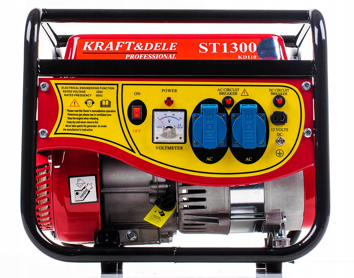 Портативний однофазний генератор живлення Kraft & Dele KD110 призначений для генерації струму змінної 220 В/400 В за допомогою двигуна внутрішнього згоряння 4-TUFT з 3 км з 3 км (1500 Вт). 4 4