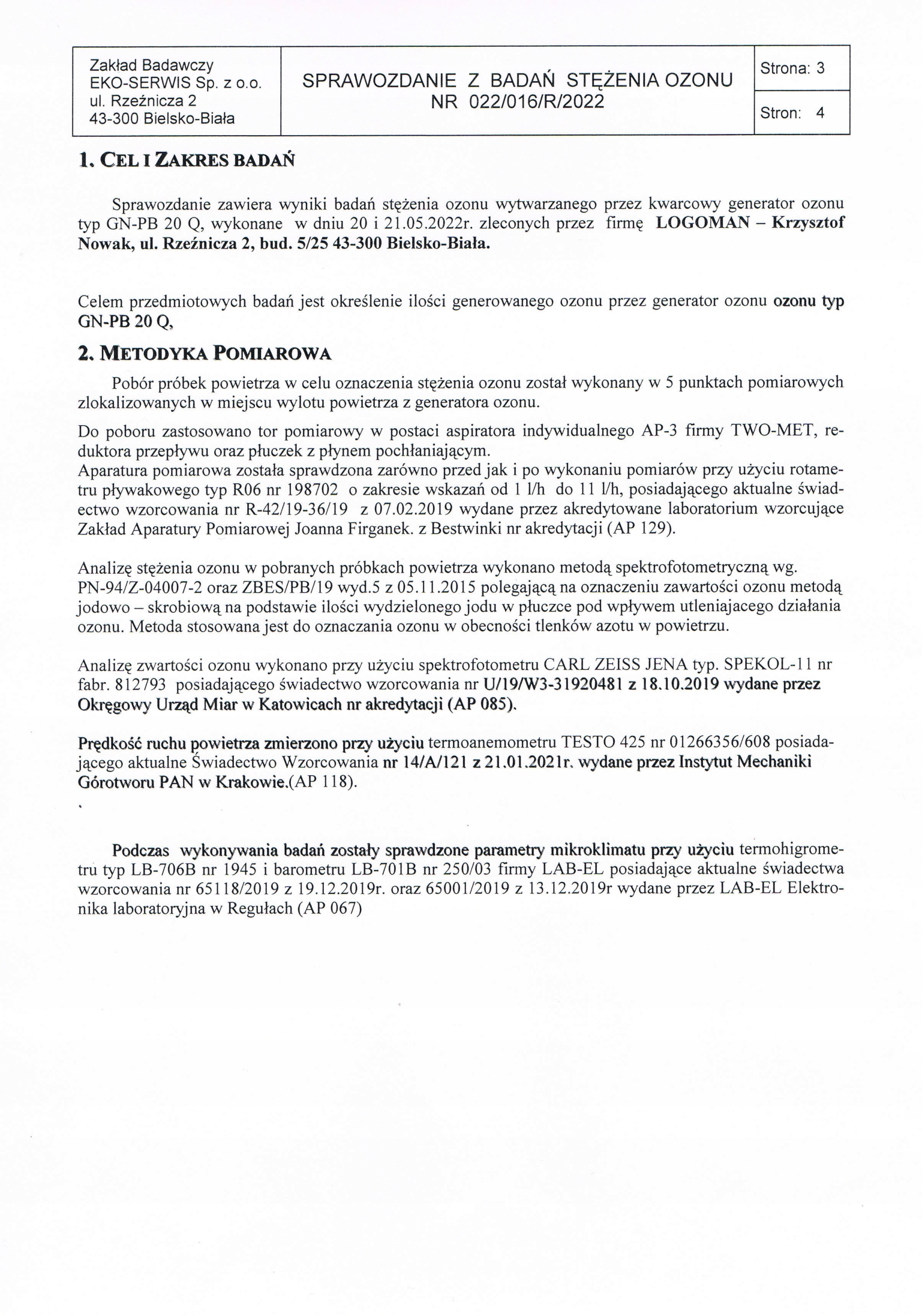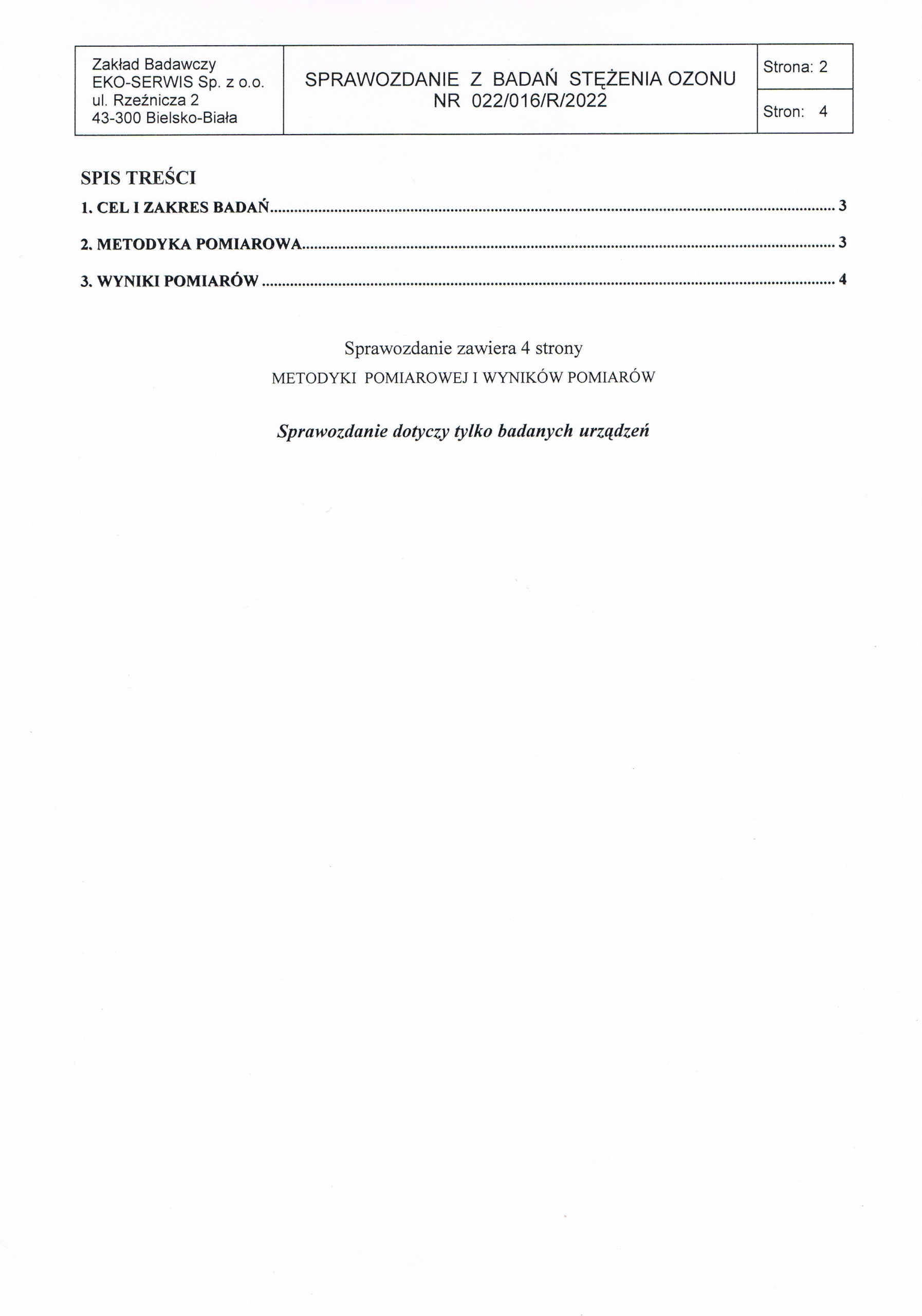 Звіт про випробування концентрації озону, проведені акредитованим науково-дослідним інститутом