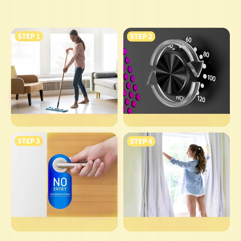 ⏱️⏱️ 120-хвилинний таймер для гнучкого використання: Цей генератор озону має 120-хвилинний таймер для налаштування часу роботи залежно від розміру кімнати та інтенсивності запаху. Глушник нижче 40 дБ, ідеально підходить для використання в квартирах і автомобілях без перешкод.