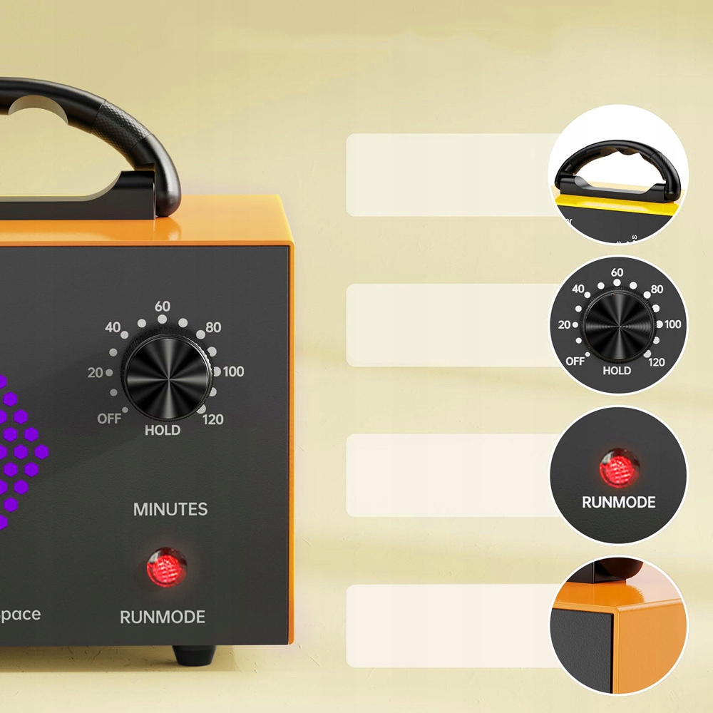 Оснащений індикатором вологості повітря та таймером 0–120 хвилин, цей комерційний генератор озону інтелектуально контролює клімат у приміщенні для забезпечення оптимальної роботи.