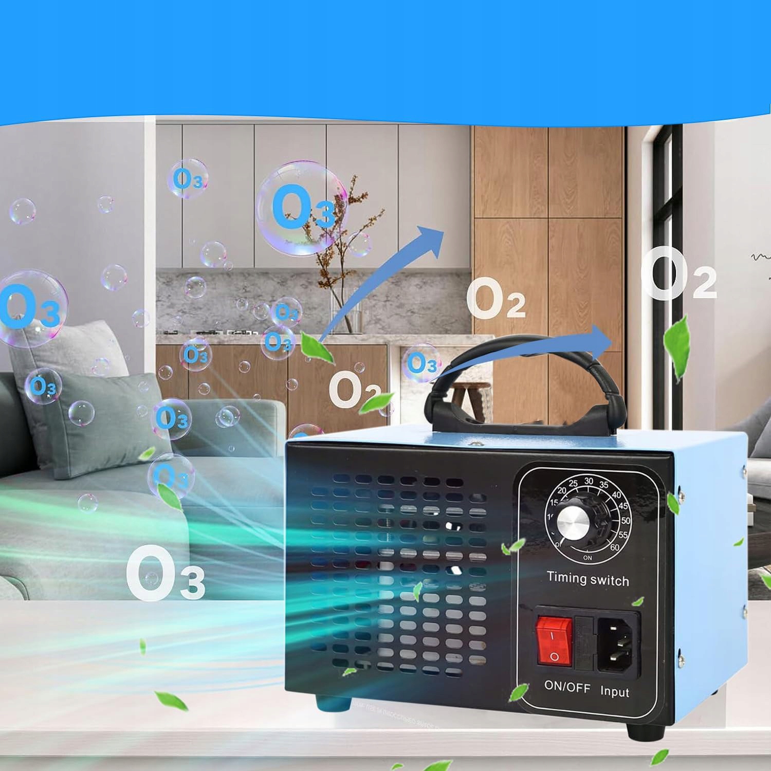 💎💎60-хвилинний таймер для безпеки -з таймером, який дозволяє регулювати використання до 1 години. Час можна регулювати в залежності від розміру приміщення та інтенсивності нейтралізованого запаху. Озон реагує з певними речовинами і очищає повітря. Надлишок озону автоматично перетворюється назад на кисень. Низьке енергоспоживання, безпечно та без хімічних відходів.