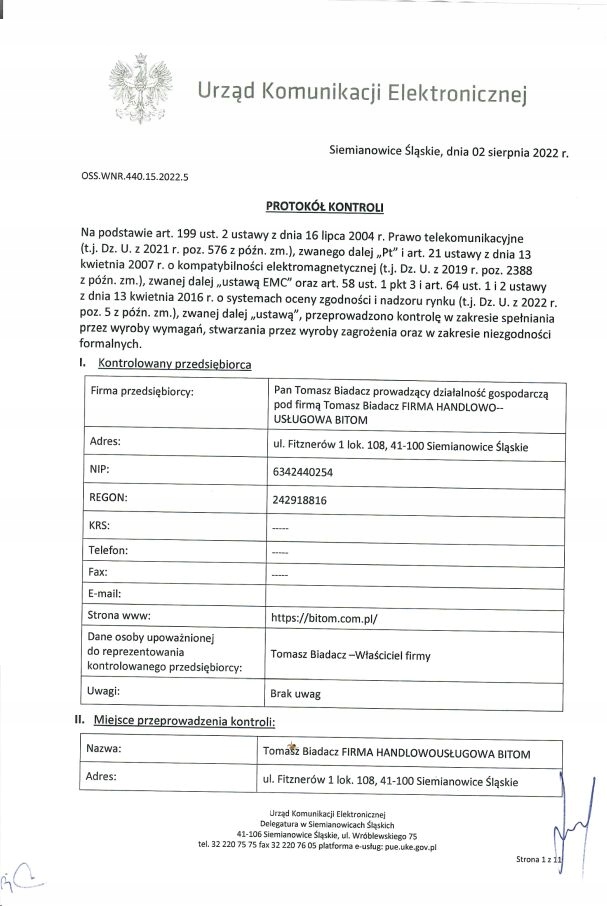 У 2022 році пристрої нашої компанії були перевірені Управлінням електронних комунікацій.