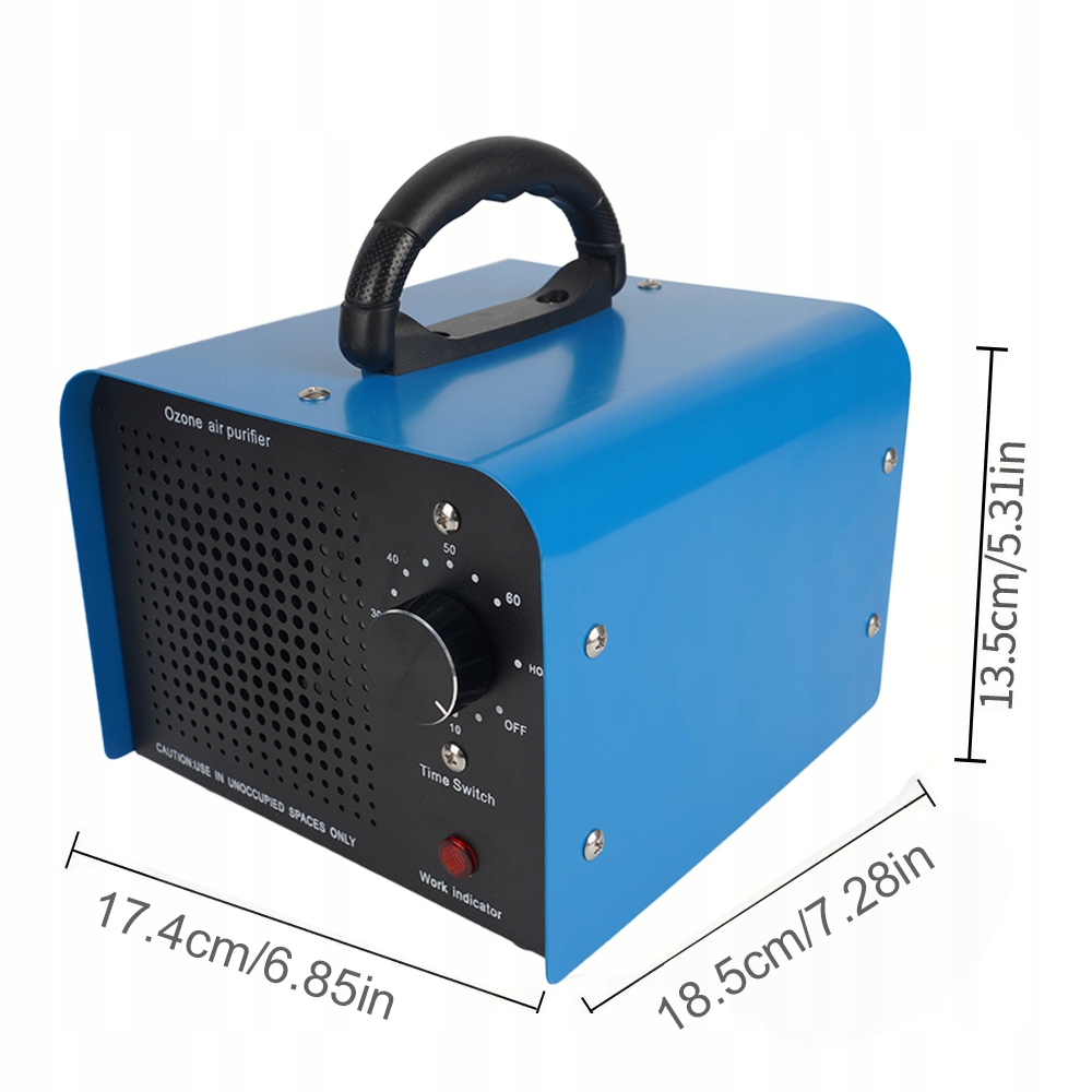 Максимальне виробництво озону становить 60 000 мг на годину, а площа очищення може досягати 200 квадратних метрів.