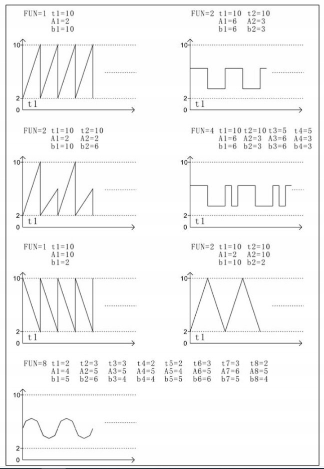 Користувач може встановити та налаштувати вихідну модель ручного генератора сигналів у режим автоматичного виведення кривої на основі реальних програм. У ручному режимі виведення користувач повинен обертати ручку, щоб змінити значення вихідного сигналу. У режимі автоматичного виведення кривої генератор сигналів буде видавати сигнал напруги на основі значень параметрів кривої, заданих користувачем.